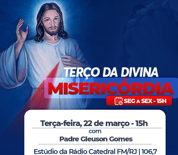 Nesta terça-feira, padre Gleuson Gomes estará nos estúdios da Rádio Catedral para conduzir o Terço da Misericórdia, às 15h. O terço também é transmitido pela WebTV Redentor e nas nossas plataformas digitais. A Rádio Catedral continua contando com a sua generosa colaboração para atingir a meta de 100% neste mês de março. Com sua ajuda,…