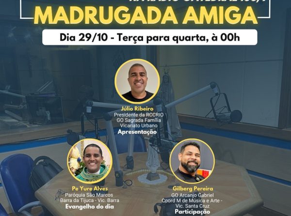 Nesta terça-feira, o programa Madrugada Amiga deste mês abordará um tema abençoado: “Que combate devemos lutar?”, retirado do livro de Timóteo. Será uma madrugada de louvor, momentos de oração por cura e muito mais! O programa começa à 0h, de terça para quarta-feira, e será apresentado por Júlio Ribeiro, presidente da Renovação Carismática Católica do…