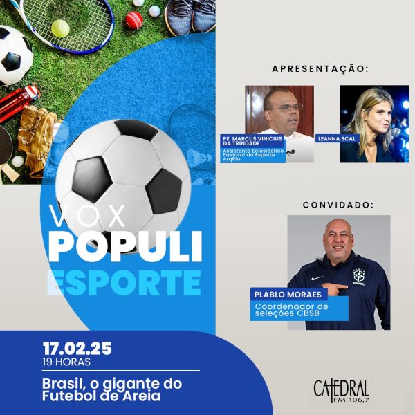 No programa Vox Populi Social desta semana, o apresentador Felipe Fernandes, presidente do Movimento Nacional da Adoção, vai receber a advogada e especialista em inventários Renata Coutinho. O programa vai ao ar todas as quartas-feiras, às 19h, e você pode acompanhar pela Rádio Catedral, FM 106,7, pela WebTV Redentor e pelas nossas redes sociais, no…