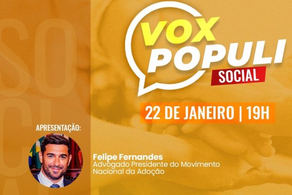 No programa Vox Populi Social desta semana, o apresentador Felipe Fernandes, presidente do Movimento Nacional da Adoção, vai receber o delegado Leonardo Affonso, que também é presidente do Sindicato dos Delegados, professor universitário e pai atípico. O programa vai ao ar todas as quartas-feiras, às 19h, e você pode acompanhar pela Rádio Catedral, FM 106,7,…
