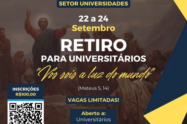 Veja maisOs universitários do Rio de Janeiro estão sendo convidados pelo Vicariato para a Educação para um retiro no mês de setembro. O retiro será de 13 a 15 de setembro, na Casa Maria Mãe do Verbo, com pregação do padre Douglas Navarro. Além dos universitários, também poderão participar professores e servidores das universidades. O tema…