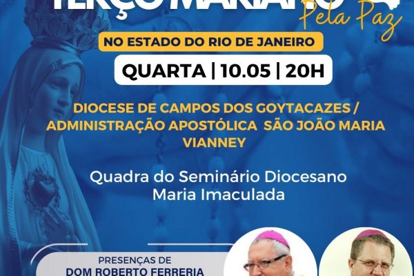 Nesta quarta-feira, o Terço Mariano pela Paz no Estado do Rio de Janeiro vai ser rezado na diocese de Campos, na quadra do Seminário Diocesano Maria Imaculada. Quem estará conduzindo o terço vai ser o bispo de Campos, Dom Roberto Ferreria, e o bispo da Administração Apostólica São João Maria Vianney, Dom Fernando Rifan. Ele…