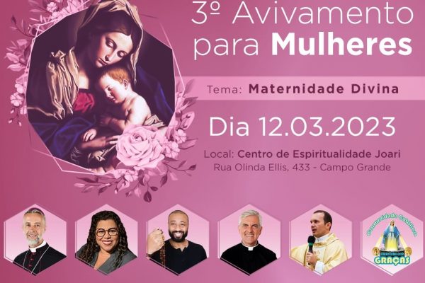 A Paróquia São João Evangelista, em Campo Grande, está com inscrições abertas para o 3º Avivamento para Mulheres, no domingo, 12 de março. O avivamento vai ser no Centro de Espiritualidade Joari, também no bairro de Campo Grande, com as presenças já confirmadas de Dom Tiago Stanislaw, padre Antônio José Santos, diácono Luciano Rocha, Zezé…
