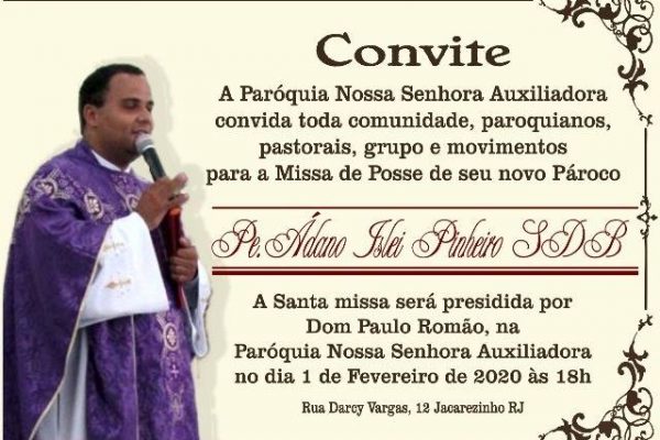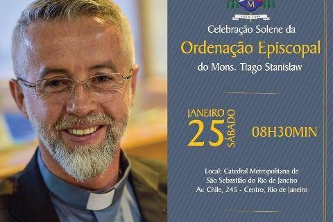 Toda comunidade do Rio de Janeiro é convidada para comparecer neste sábado, dia 25, na Catedral de São Sebastião, para a missa de ordenação episcopal do monsenhor Tiago Stanislaw. A celebração terá início às 8h30.