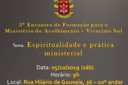 No dia 5 de outubro, o Vicariato Sul da Arquidiocese do Rio de Janeiro promoverá o 3º Encontro de Formação do Ministério do Acolhimento. O encontro é para todas as paróquias e capelas do vicariato. Vai ser na sede do Vicariato Sul, no prédio da Paróquia Nossa Senhora de Copacabana e Santa Rosa da Lima,…