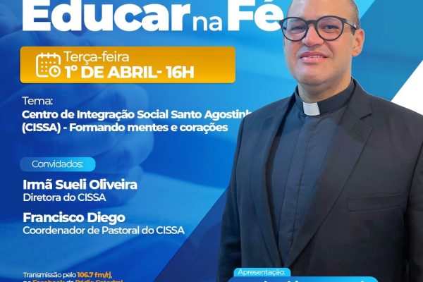 Nesta terça-feira, a Rádio Catedral vai transmitir o programa especial Educar na Fé. O Vigário Episcopal para a Educação, padre Thiago Azevedo, vai receber a diretora e o coordenador de pastoral do Centro de Integração Social Santo Agostinho, que vão falar sobre o CISSA, formando mentes e corações. O programa Educar na Fé vai ao…