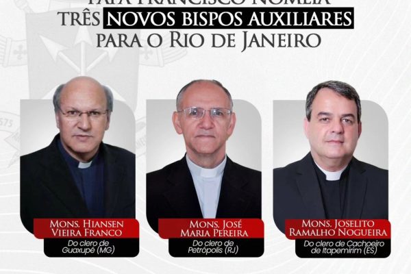 Veja maisPapa Francisco nomeia três novos bispos auxiliares para o Rio de Janeiro: Mons. Hiansen Vieira Franco, do clero de Guaxupé (MG); Mons. José Maria Pereira, do clero de Petrópolis (RJ); Mons. Joselito Ramalho Nogueira, do clero de Cachoeiro de Itapemirim (ES). Além de aceitar a renúncia por idade do Dom Antônio Augusto Dias Duarte, Bispo…
