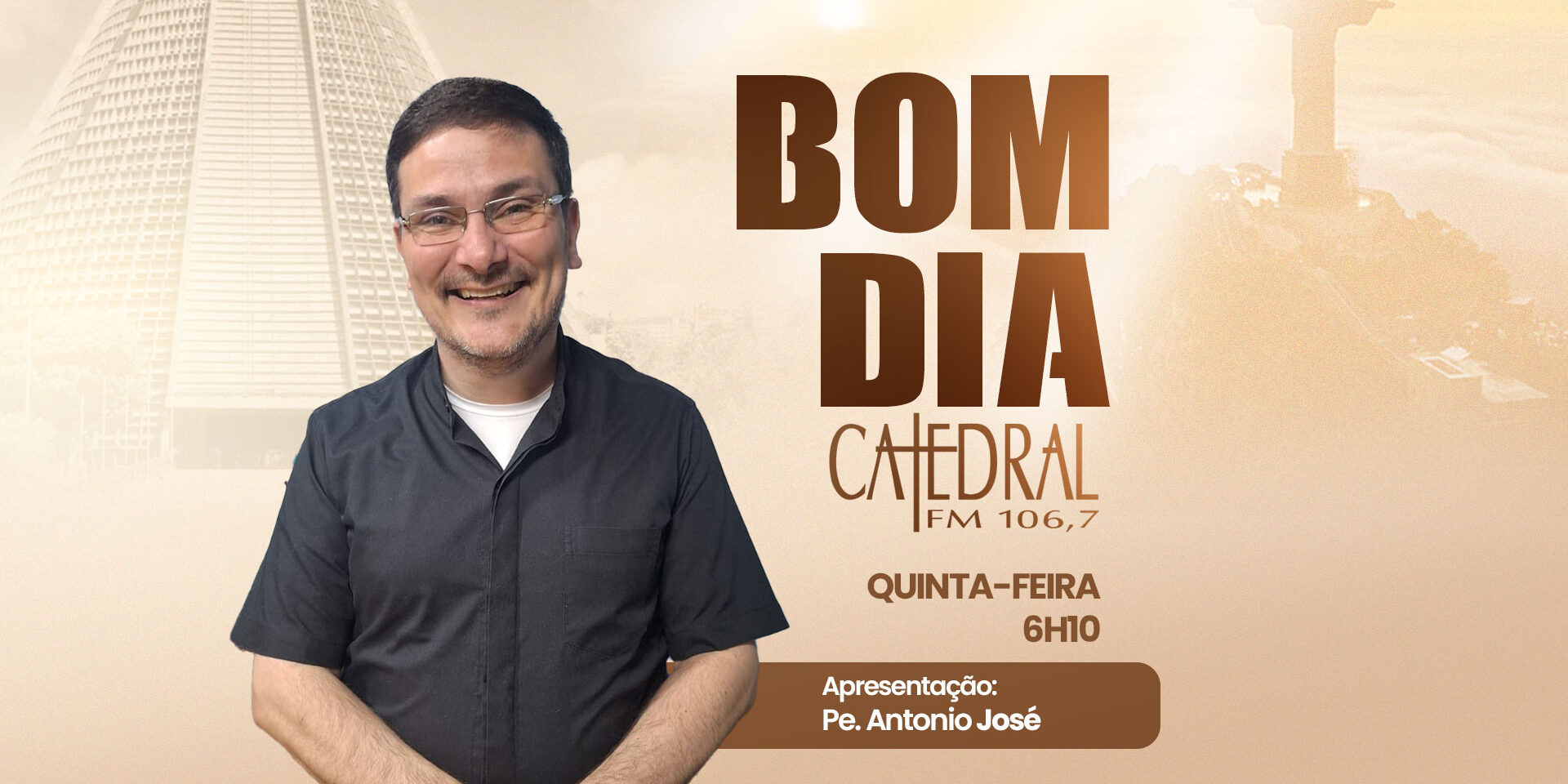 Programa Bom Dia Catedral com apresentação do Padre Antônio José, nesta quinta-feira, 05 de fevereiro, diretamente dos Estúdios da Rádio Catedral FM 106,7, no Bairro da Glória RJ.
