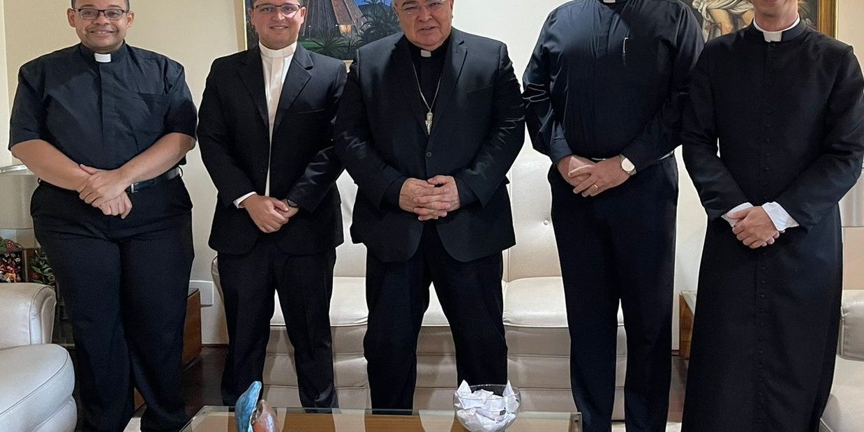 Aconteceu nesta semana a reunião do Cardeal Orani Tempesta com os padres responsáveis de nosso vicariato: Pe. Thiago Azevedo (Vigário Episcopal), Pe. Jorge Luiz Vieira (Vigário Episcopal adjunto), Pe. Wagner Augusto Moraes (Assistente eclesiástico da Pastoral da Educação) e Pe. Douglas Navarro (Assistente eclesiástico do Setor Universidades).