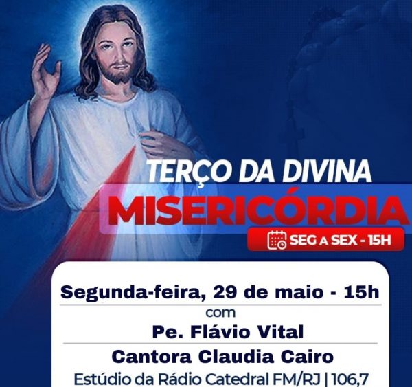 A Rádio Catedral convida você a rezar o Terço da Misericórdia. Nesta segunda-feira, às 15h, ele será rezado pelo padre Flávio Vital e pela cantora Claudia Cairo, que estarão em nossos estúdios. O terço também é transmitido pelos nossos aplicativos sociais e pela WebTV Redentor. Hoje é dia 29, e faltam apenas dois dias para…