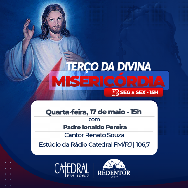 Hoje, às 15h, o Terço da Misericórdia da Rádio Catedral vai estar presente na Paróquia de Santa Rita, no centro da cidade, na preparação da festa da padroeira, no próximo dia 22. O terço será conduzido pelo padre Wagner Toledo, pároco da comunidade e também Vigário Episcopal do Vicariato Urbano. Padre Wagner estará acompanhado da…
