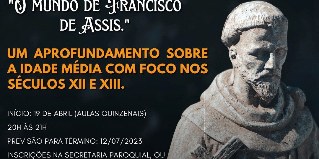 A Paróquia São Francisco de Assis, no bairro do Rio Comprido, inicia na semana que vem o seu primeiro ciclo de palestras sobre São Francisco. O tema é “O mundo de Francisco de Assis”, e as palestras vão de 19 de abril à 12 de julho, quinzenalmente, às quartas-feiras, das 20h às 21h.