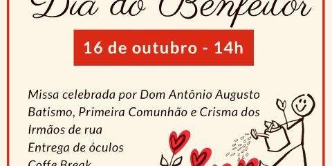 O Ambulatório da Providência vai promover na próxima quarta-feira, dia 16, o Dia do Benfeitor. A cerimônia vai começar às 14, com missa presidida pelo bispo auxiliar, Dom Antônio Augusto, com batismo, primeira comunhão e crisma para os irmãos de rua. O ambulatório fica na Rua Francisco Eugênio, 348, em São Cristóvão.