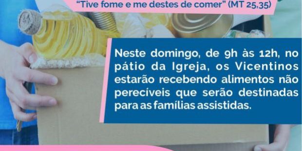As doações de alimentos poderão ser feitas das 9h às 12h, e serão distribuídas para as famílias carentes da região.