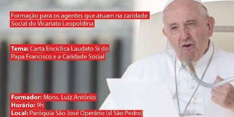 No próximo sábado, dia 26, às 9h, vai ter uma formação para os agentes que atuam na caridade social do Vicariato Leopoldina. O encontro será na Paróquia São José Operário, na Rua Gregório de Castro Moraes, 1.058, no Jardim Guanabara, na Ilha do Governador. O tema da palestra será a encíclica do Papa Francisco, Laudato Si, e a caridade social.