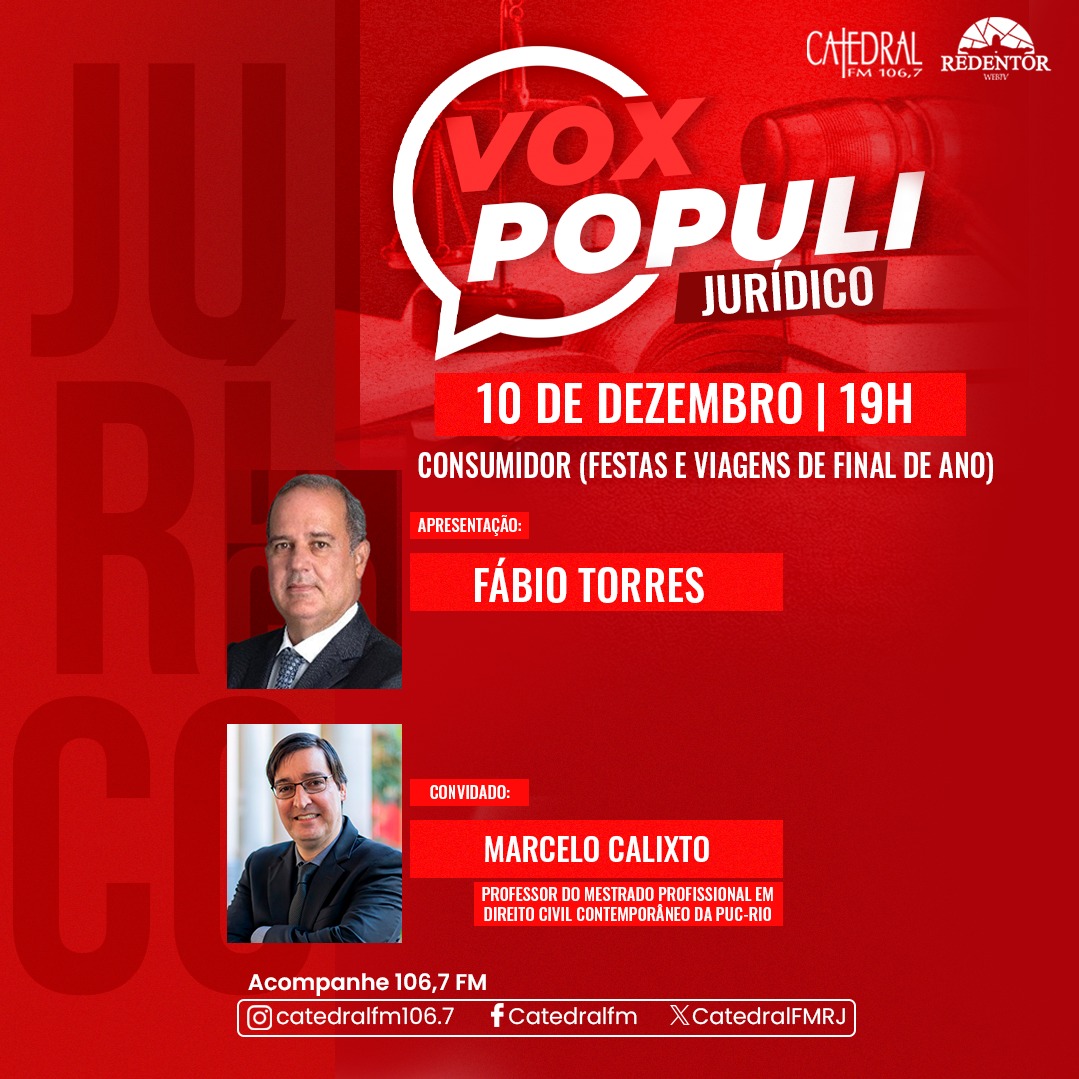 Hoje nós vamos falar sobre Direito do Consumidor, pensando naqueles problemas que podem acontecer na compra de ingressos para festas e viagens de férias. E para falar sobre esse assunto, o apresentador Fábio Torres recebe o professor do Mestrado Profissional em Direito Civil Contemporâneo da PUC-Rio, Marcelo Calixto.