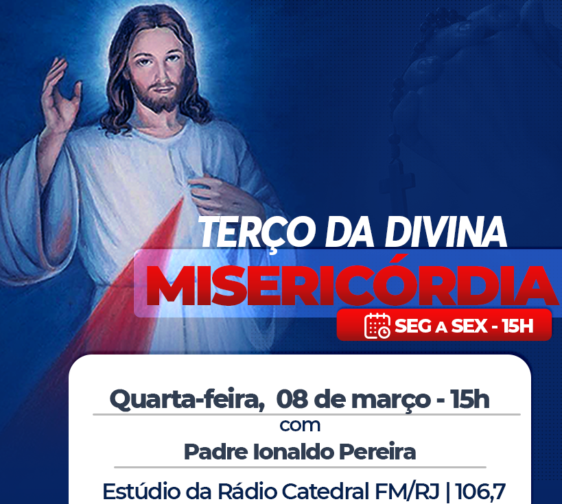 Veja maisNo Dia Internacional da Mulher, a Rádio Catedral convida a você rezar conosco o Terço da Misericórdia. Nesta quarta-feira, ele vai ser conduzido pelo padre Ionaldo Pereira, que faz parte da direção da Fundação Catedral. O terço terá início às 15h, e você também pode acompanhar e rezar conosco pelos aplicativo da Catedral-FM, pelas nossas…