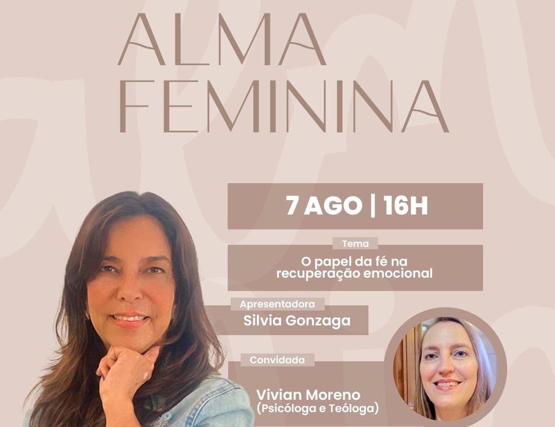 Veja maisNo programa Alma Feminina desta semana, o tema a ser refletido vai ser “O papel da fé na recuperação emocional”. A apresentadora Silvia Gonzaga vai conversar com a psicóloga e teóloga Vivian Moreno. O programa vai ao as quintas-feiras, às 16h, pela Rádio Catedral, FM 106,7 e pela WebTV Redentor.