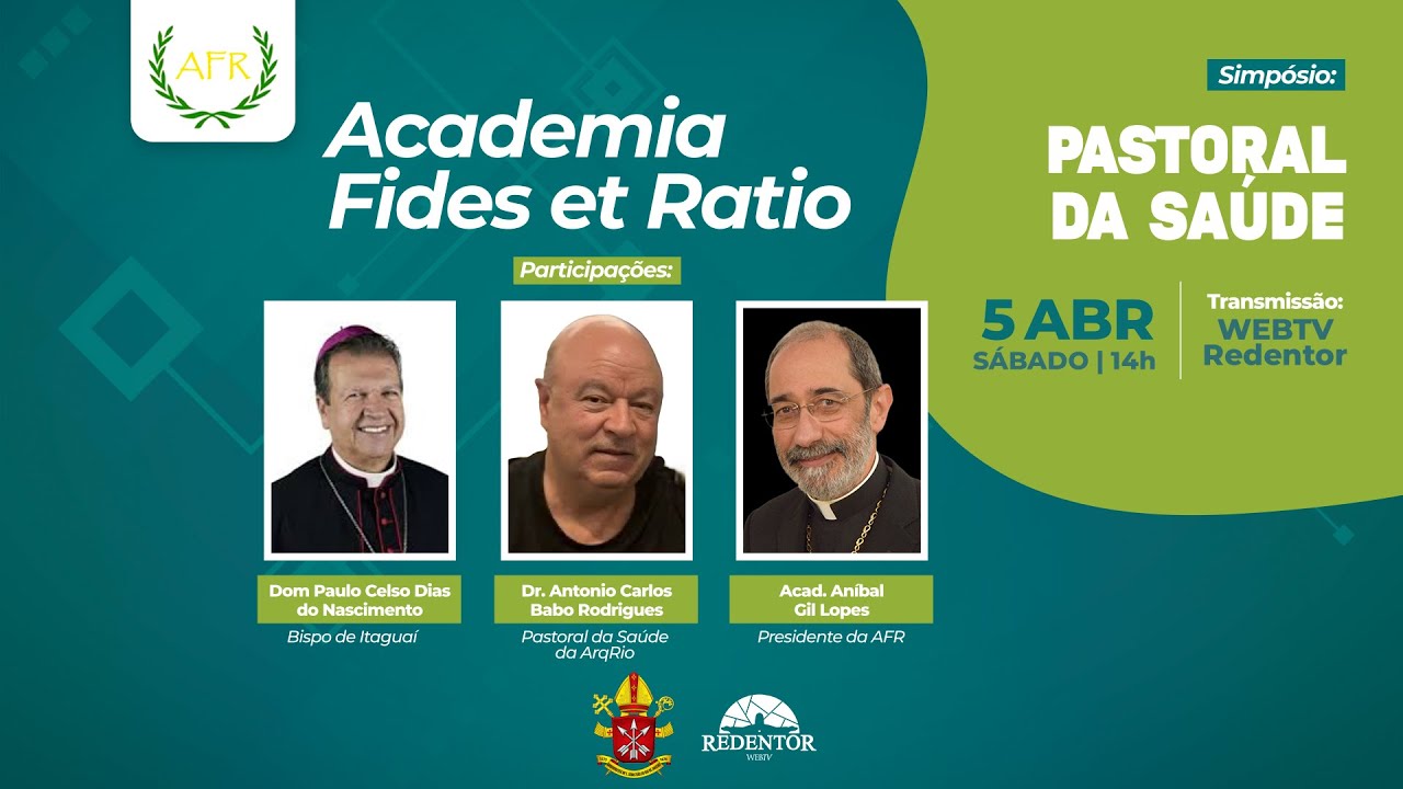 Simpósio da Academia Fides et Ratio, um canal de diálogo que coloca a Igreja em contato com o mundo, neste Sábado, 05 de Abril, moderado pelo acadêmico Monsenhor Aníbal Gil Porto, Presidente da AFR. Convidado(a): Dom Paulo Celso Dias do Nascimento – Bispo de Itaguai. Dr Antonio Carlos Babo Rodrigues – Pastoral da Saúde da…