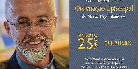Toda comunidade do Rio de Janeiro é convidada para comparecer neste sábado, dia 25, na Catedral de São Sebastião, para a missa de ordenação episcopal do monsenhor Tiago Stanislaw. A celebração terá início às 8h30.