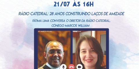 O convidado desta terça-feira, dia 21 de julho será o Cônego Marcos William Bernardo, que também é o diretor-geral da Rádio Catedral. A live será às 16h.
