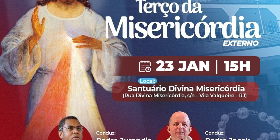 Terço da Divina Misericórdia, conduzido pelo Padre Jurandir, Pe. Jacinto, nesta sexta-feira, dia 23 de Janeiro, diretamente do Santuário da Divina Misericórdia, Vila Valqueire – RJ.