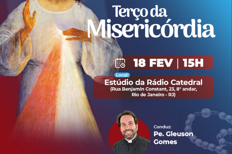 Terço da Divina Misericórdia, conduzido pelo Padre Gleuson Gomes, nesta quarta-feira, dia 18 de Fevereiro, diretamente dos Estúdios da Rádio Catedral, FM 106,7 – Glória – RJ.